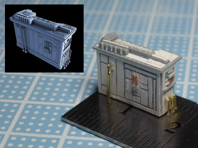引き続き、MPC製AT-ATの頭部内コクピットをでっち上げています。 操縦用コクピットの後ろの指揮官が立っている場所にある、指揮官用コクピット?を製作しました。 たしか劇中では、ダースベイダーのホログラムが浮かんだりしていた所です。 0.2mmのプラペーパーをカットして0.5mmのプラ板に貼り付けて製作しました。 15mm×5mm程度と小さいので、全然精度良く製作出来ませんが、まぁ雰囲気という事で(^-^;) パイプのような物が出ているので、一応これも0.5mmの真鍮線で作ってみました。 資料では裏が...