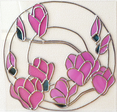 JUGEMテーマ:ガラス工芸・ガラス作品など ワンステップ教室には縦長の窓があるのですが、そちらを飾る素敵な五連カメリア作品が出来上がりました。 225mm×225mmが四枚。200mm×225mmが一枚。 サイズを違いが一枚あるのですが気がつきましたか? それともう一点はハートのティシュケース作品です。 使用するリードやフィルムの色で随分と雰囲気が変わります。