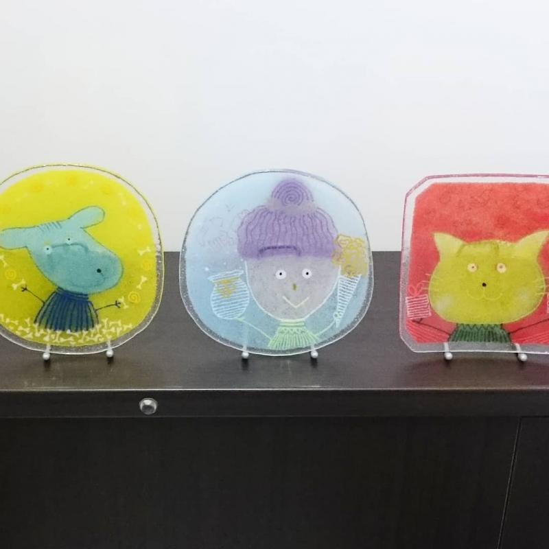 JUGEMテーマ:ガラス工芸・ガラス作品など ご夫婦お二人のテーマアニマルであるふくろうとペンギンをプレート作品にされました。 こんな風にテーマを決めるのも素敵ですね。