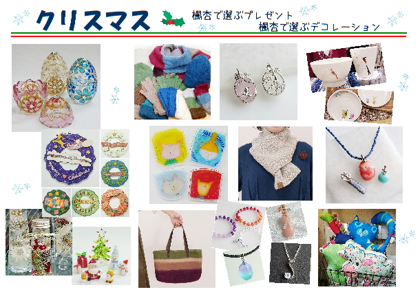 23日、クリスマスイブ・イブです! プレゼントはご用意されましたか? 楓杏はまるごとクリスマス。 クラフト作家のアクセサリーやインテリア小物、 ぽかぽかアルパカの手袋・帽子・ネックウォーマー・靴下、 ウールセーターやあったか素材のスカートやパンツ、 フェアトレードの小物雑貨や木のおもちゃ、 美味し〜いオーガニックのチョコレートやクッキー、 ハーブティー、などなど。 こころを込めて、ラッピングいたします♪ ...