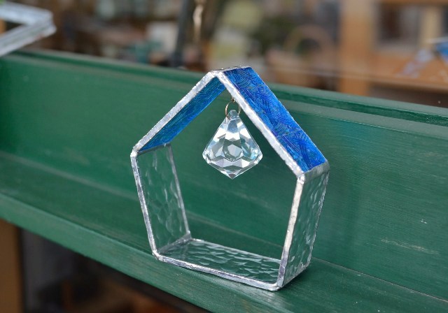 お客さまの作品です。 おうちの形のサンキャッチャー 今回はブルーの屋根になりました。 お客さま持込みのスワロフスキーやクリスタルガラス いろいろ付け変えて楽しみました☆ ガラスのボールもキラキラと見ていて飽きないですね。 つなげて作るサンキャッチャーも可愛いですが、ステンドグラスと組み合わせても◎ 光彩を楽しめて素敵です。 &nb...