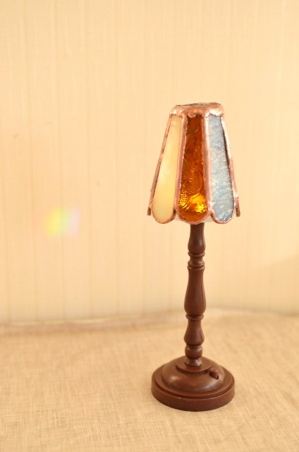 ひさーしぶりにステンドグラスのご紹介。 お客さまと作りました。 ミニミニサイズのスタンドランプ。 土台は100yenショップのもの 最近の100yenショップは品ぞろえ豊富ですよね〜 こちらはホワイト。お客さま作。 白にオレンジと黄色が映えて可愛いです☆ ちなみにホワイト・ブラウン・ブラックの3色あります。 プラスティック製でボタン電池使用。 光の透過が楽しめるくらいの明るさがあります。 ...