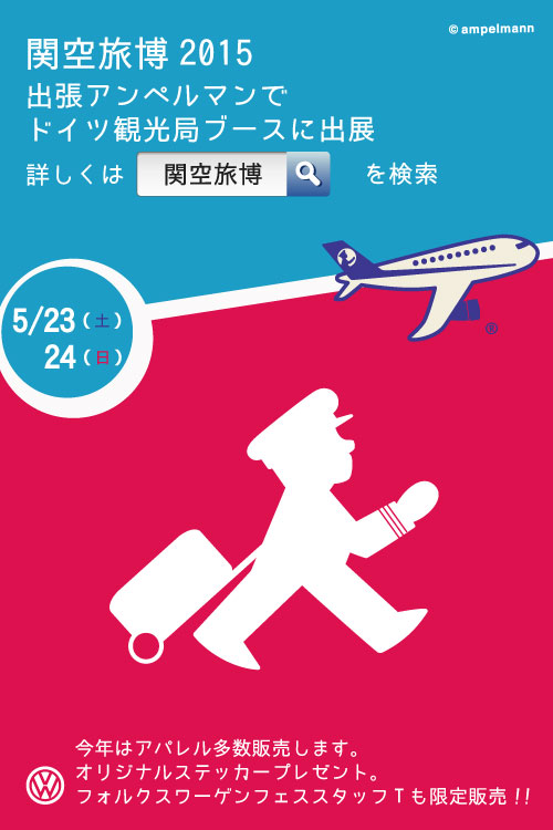 こんにちは。緩々(ユルユル)です。 昨日はアンペルマン×VWコラボTシャツを フォルクスワーゲンフェスタでお披露目。 その他もコツコツとコラボレーション企画を 水面下で模索中。 さて、そんなこんなでなかなかBLOGの更新 できなく今日まで。すみません。 だってほとんどPCの前にいられないので〜♪残念!! アンペルマンザムライです。 さて、明日からは関空旅博2015に向けて大阪に入ります。 関空では世界各国の観光局の皆様とお会いできるイベント。 私も楽しみにしております。 今年もドイツ観光局さんのブースにてア...