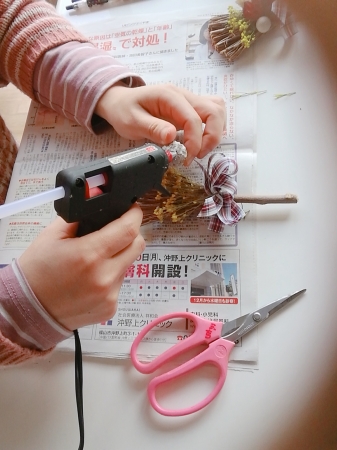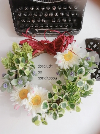 JUGEMテーマ:アート&クラフト #福山市 #どら吉の花工房 です♪ #初春のリース(^。^)y-~🐤 #アーティフィシャルフラワー で、作ってます。 ・ ¥2500込。完成品 ・