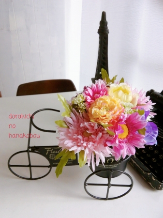 JUGEMテーマ:アート&クラフト #福山市 #どら吉の花工房 です♪ ・ 自転車型アレンジ(^。^)y-~🐤 #アーティフィシャルフラワー で、作ってます🎵 完成品¥3000 ・ 春が待ち遠しいなぁ✨ ・ ホームページhttps://r.goope.jp/dorakichi