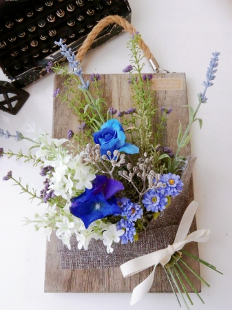 JUGEMテーマ:アート&クラフト #福山市 #どら吉の花工房 です♪ ・ ブルー系壁掛け。 #アーティフィシャルフラワー で作ってます🎵 ¥3500+tax。 ・ 午後、一人で近くのスーパー銭湯へ。 ガラボン引いたら、当たった‼️ イエ〜⤴️イ!! ・ ホームページhttps://r.goope.jp/dorakichi ・