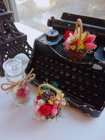 JUGEMテーマ:アート&クラフト #福山市 #どら吉の花工房 です♪ ・ ミニかご&ふた付き硝子瓶。 どれも¥700。 ・ #ドライフラワー や、#プリザーブドフラワー で作ってます🎵 ・ 今週末1/19(日)10:00〜16:00。 尾道の美容室hair works BUZZ での、女子会フリマに参加させて頂きます❗ 作品オール500円(通常3000円程度の作品)の、出血サービスです❗ 来てね⁉️ ・