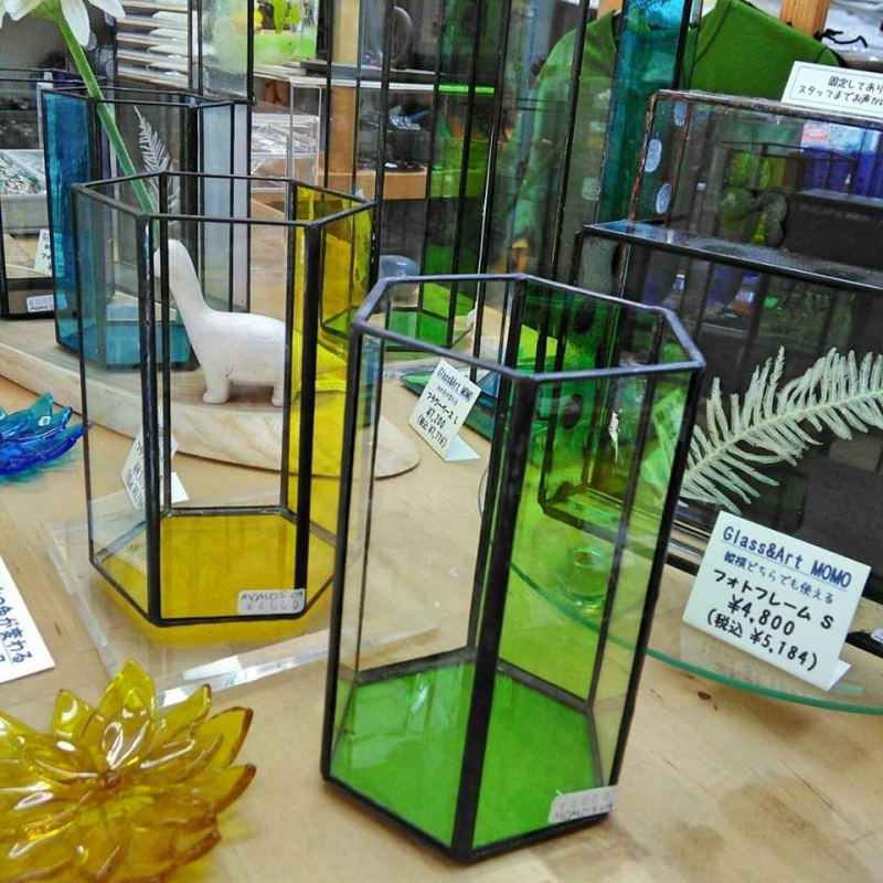 MOMOさんのフラワーベース、美しいです! 水を入れると水の色が変化するように 作られているそうですが、 残念ながら店では試せない(^。^;) なぜか恐竜くんがなじんでおります。 ぜひ見に来てください! JUGEMテーマ:アート&クラフト