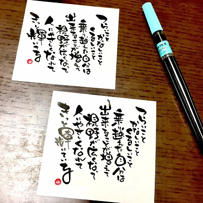 JUGEMテーマ:想いを伝える(*^_^*)アート書道表現人 こんばんは。 あとりええむえふ主宰の横山宮子です(*´▽`*) 今日から11月ですね。 今年もあと二か月を残すのみになりました。 時がたつのはホントに早いですね。 さあ、この残り2か月、どう過ごそうかな。 ワクワクで参りましょー(*´▽`*) ミンネで筆文字額販売始めました♪ 是非ご覧くださいねッ! ***** 喜びの声が毎回たく...