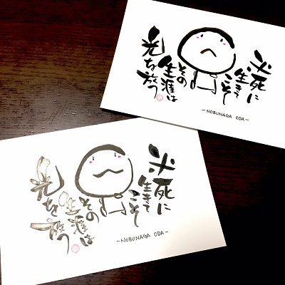JUGEMテーマ:想いを伝える(*^_^*)アート書道表現人 こんばんは。 あとりええむえふ主宰の横山宮子です(*´▽`*) 本日2回目のブログ投稿は、筆文字でーす♪ 「必死に生きてこそその生涯は光を放つ」 織田信長の言葉。 最初、右上のぼくちゃんを描いたのですが。 必死とはなんだ? 死に物狂い・・・っていうと、 めっちゃしんどくて、苦しい。 しんどくって苦しい生き方をすると光を放つのか? なんか違うなぁって。 織田信長さ...