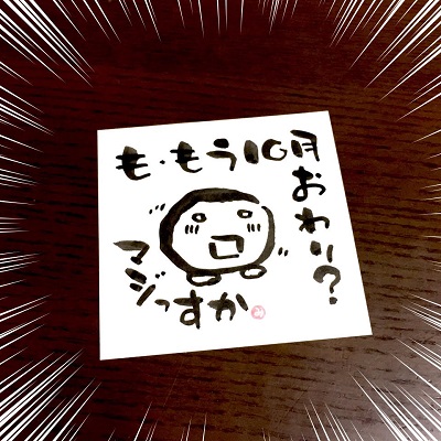 JUGEMテーマ:想いを伝える(*^_^*)アート書道表現人 こんばんは。 あとりええむえふ主宰の横山宮子です(*´▽`*) 気がつけば、もう10月も2日しかありません。 なんてこった・パンナコッタ!! ↑分かる人は吉本ファンですね(≧▽≦) 気がつけば今年もあと2か月?! マジっすか、マジっすか!! ((((;゚Д゚))))ガクガクブルブル 忙しいを言い訳にしないで、 毎日を大切に過ごしたいです。 ...