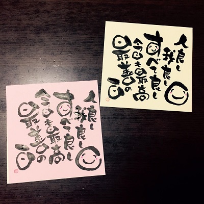 JUGEMテーマ:想いを伝える(*^_^*)アート書道表現人 こんばんは。 あとりええむえふ主宰の横山宮子です(*´▽`*) 笑お! 笑お! 笑っちゃお! 笑うと脳は騙される。 「楽しいから笑う」もいいけど、 「笑うから楽しくなる」でも、いいんじゃな〜い(*´▽`*) ミンネで筆文字額販売始めました♪ 少しづつ作品増やしてまーす(*´▽`*) ***** 手づくり絵本教室、製本教室開催いたします♪ 1回完結...