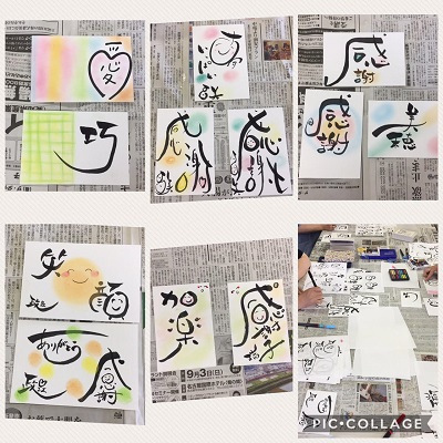 JUGEMテーマ:想いを伝える(*^_^*)アート書道表現人 こんばんは。 あとりええむえふ主宰の横山宮子です(*´▽`*) 今日は愛東コミュニティセンターで開催の ゆる筆文字教室の2回目でした。 漢字をかっこよく書く方法ーーー「感謝」を練習して、 そのあと自由制作に入りました。 今日もステキな作品が生まれましたよー!!! みなさん素晴らしいです〜〜〜〜(*´▽`*) 「かっこよく書くコツ」をお話して、 試行錯誤しな...