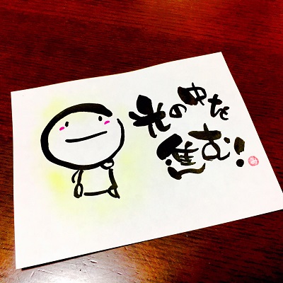 JUGEMテーマ:想いを伝える(*^_^*)アート書道表現人 こんばんは。 あとりええむえふ主宰の横山宮子です(*´▽`*) 変わるって勇気がいる。 周りに流されないで、変わらないって、強さがいる。 勇気をもって、強さをもって。 さあ、前に進もう! *** ミンネで筆文字額販売始めました♪ 是非ご覧くださいね。 ***** 喜びの声が毎回たくさん寄せられる ゆる筆文字教室、3名以上で出張開催もいたし...