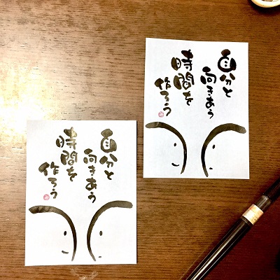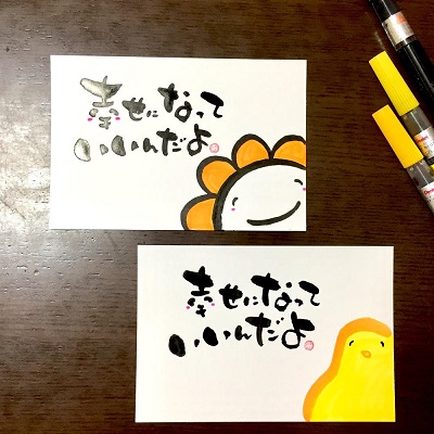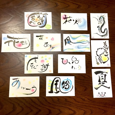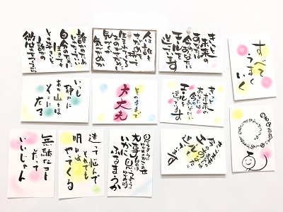 JUGEMテーマ:想いを伝える(*^_^*)アート書道表現人 こんばんは。 あとりええむえふ主宰の横山宮子です(*´▽`*) 今日はJEUGIAカルチャー近江八幡で開催の ゆる筆文字教室でした。 文章を上手に書くコツをお話、練習しました。 みなさん、とても集中して取り組まれて!! 書くごとに上達していく様子が 素晴らしかったです(*´▽`*) さてさて、出来上がった作品たちはこちら。 ↓ ↓ ↓ それぞれに個性豊...
