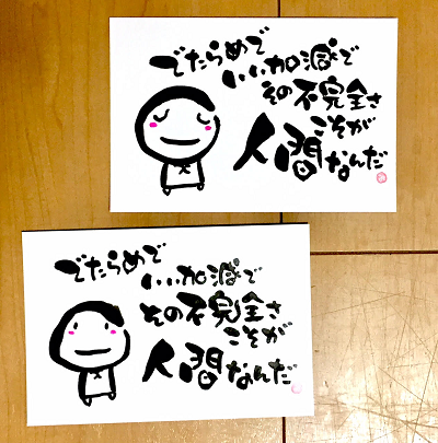 JUGEMテーマ:想いを伝える(*^_^*)アート書道表現人 こんにちは。 あとりええむえふ主宰の横山宮子です(*´▽`*) 間違えても、だいじょーぶ(*´▽`*) 人生長いんだからさ、いろいろあるよね。 さ、次行ってみよー! ***** 喜びの声が毎回たくさん寄せられる ゆる筆文字教室、出張開催もいたします♪ 詳しくはこちらをご覧ください ***** 手づくり絵本教室、製本教室開催いたします♪ 1回完結ワークショップ〜6か月連続の本格教...