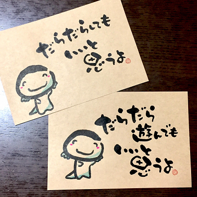 JUGEMテーマ:想いを伝える(*^_^*)アート書道表現人 こんばんは。 あとりええむえふ主宰の横山宮子です(*´▽`*) たまにはね、 ダラダラするものいいよね。 ダラダラ遊んで、のーんびり過ごして。 さあ、明日からまた張り切っていきましょー(*´▽`*) ***** 喜びの声が毎回たくさん寄せられる ゆる筆文字教室、出張開催もいたします♪ 詳しくはこちらをご覧ください ***** 手づくり絵本教室、製本教室開催いたします♪ 1回完...