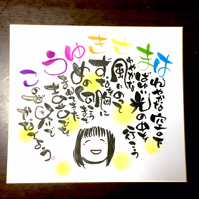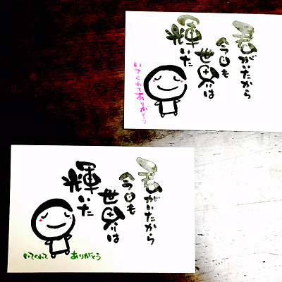 JUGEMテーマ:想いを伝える(*^_^*)アート書道表現人 こんばんは。 あとりええむえふ主宰の横山宮子です(*´▽`*) (昨日の続き・・・かな?) たとえね、君が今、 すごくしんどくても。 すごく心がしんどくても。 君がいたから、今日も世界は輝いた。 いてくれて、ありがとう(*´▽`*) 存在してくれて、ありがとう(*´▽`*) ***** 喜びの声が毎回たくさん寄せられる ゆる筆文字教室、出張開催いたします♪ 詳しくはこちらをご...