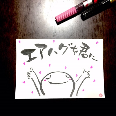 JUGEMテーマ:想いを伝える(*^_^*)アート書道表現人 こんばんは。 あとりええむえふ主宰の横山宮子です(*´▽`*) エアハグを、君におくるよ。 君に、届け! ***** 喜びの声が毎回たくさん寄せられる ゆる筆文字教室、出張開催いたします♪ 詳しくはこちらをご覧ください ***** 手づくり絵本教室、製本教室開催いたします♪ 1回完結ワークショップ〜6か月連続の本格教室、 親子向け、大人向け、各種メニューございます。 詳しくはこ...