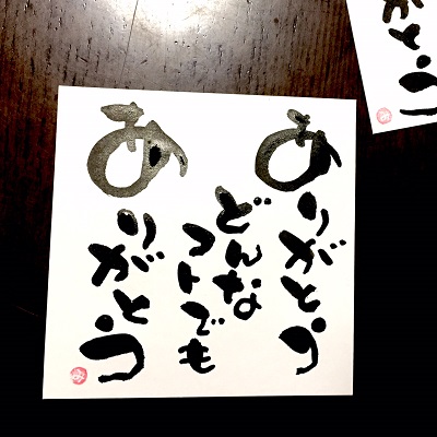 JUGEMテーマ:想いを伝える(*^_^*)アート書道表現人 こんばんは。 あとりええむえふ主宰の横山宮子です(*´▽`*) 本日2回目のブログ投稿〜♪ きゅ〜〜〜〜⤵と 落ちこむこともありますが、(今日はそういう日でした(;´∀`)) どんなコトでも、ありがとうやね。 こんな日も、あんな日も、 どんな出来事でも、明日に未来に、つながっていくんだ。 だから、うん、ありがとうなのですー(*´▽`*)  ...