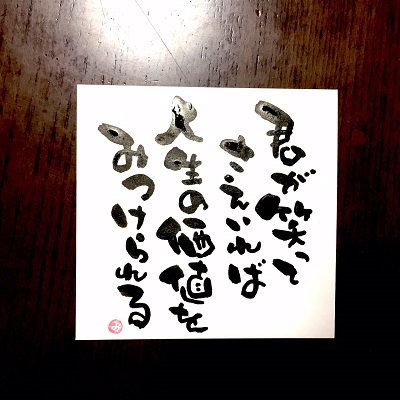 JUGEMテーマ:想いを伝える(*^_^*)アート書道表現人 こんばんは。 あとりええむえふ主宰の横山宮子です(*´▽`*) 今日の筆文字〜♪ さとうみつろうさんの言葉。 PHP「運を強くするヒント」(2015秋冬号)から。 ***** 筆文字教室、3名以上で出張開催します♪ 婦人会、子育てサークル、幼稚園・学校での活動、子育て支援センターetc.でも 筆文字教室させていただきます! お気軽にお問い合わせください(*´▽`*) mtwinklef@gmail.com (横山)まで ...
