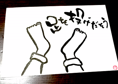 JUGEMテーマ:想いを伝える(*^_^*)アート書道表現人 こんばんは。 あとりええむえふ主宰の横山宮子です(*´▽`*) 今日の筆文字〜♪ 君のしたこと、きっとみんな喜ぶよ。 大丈夫、心配なんてしなくていいよ。 ***** 筆文字教室、3名以上で出張開催します♪ 婦人会、子育てサークル、幼稚園・学校での活動、子育て支援センターetc.でも 筆文字教室させていただきます! お気軽にお問い合わせください(*´▽`*) mtwinklef@gmail.com (横山)まで ...