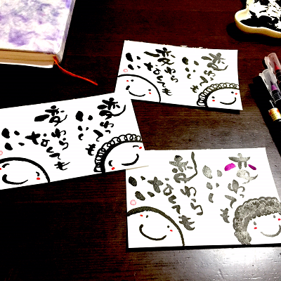 JUGEMテーマ:想いを伝える(*^_^*)アート書道表現人 こんばんは。 あとりええむえふ主宰の横山宮子です(*´▽`*) 変わっても、変わらなくてもいい。 いいとか、悪いとかじゃなくて。 自分の一番心地いいところに行こう(*´▽`*) ***** 筆文字教室、3名以上で出張開催します♪ 婦人会、子育てサークル、幼稚園・学校での活動、子育て支援センターetc.でも 筆文字教室させていただきます! お気軽にお問い合わせください(*´▽`*) mt...