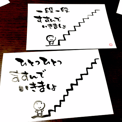 JUGEMテーマ:想いを伝える(*^_^*)アート書道表現人 こんばんは。 あとりええむえふ主宰の横山宮子です(*´▽`*) さて。 今日の筆文字。 いろんな時があるよね。 気長に参りましょ。 だいじょうぶ、だいじょうぶ。 ***** 筆文字教室、3名以上で出張開催します♪ 婦人会、子育てサークル、幼稚園・学校での活動、子育て支援センターetc.でも 筆文字教室させていただきます! お気軽にお問い合わせください(*´▽`*) mtwinklef@gmai...