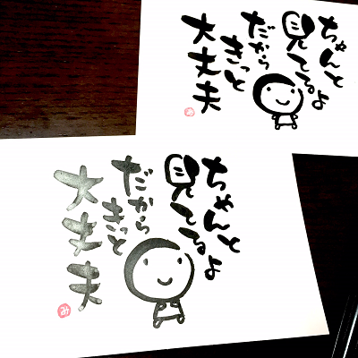 JUGEMテーマ:想いを伝える(*^_^*)アート書道表現人 こんばんは。 あとりええむえふ主宰の横山宮子です(*´▽`*) 今日の筆文字〜♪ うん、きっと大丈夫(*´▽`*) ***** 筆文字教室、3名以上で出張開催します♪ 婦人会、子育てサークル、幼稚園・学校での活動、子育て支援センターetc.でも 筆文字教室させていただきます! お気軽にお問い合わせください(*´▽`*) mtwinklef@gmail.com (横山)まで ***** 手づくり絵本教室、出張...