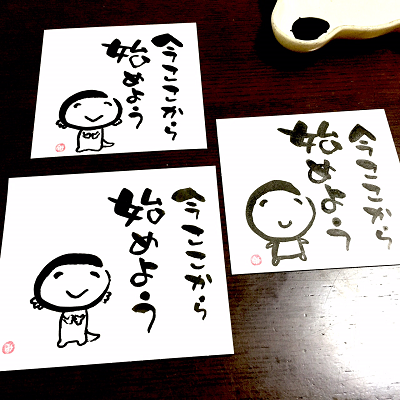 JUGEMテーマ:想いを伝える(*^_^*)アート書道表現人 こんばんは。 あとりええむえふ主宰の横山宮子です(*´▽`*) 人生、何を始めるにも遅いなんてことはないし。 嫌なことあったとしても、 落ちこんだとしても。 今ここから、始めよう。 そう言う私は、今とても眠い。 とてもとても眠いので、 今から、寝ます(笑) おやすみなさい。 ***** 筆文字教室、3名以上で出張開催します♪ 婦人会、子育てサークル、幼稚園・学...