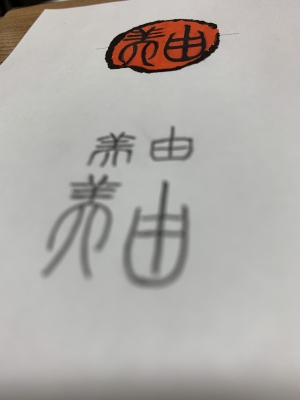 JUGEMテーマ:書道 輪郭が丸っこい落款の原稿を作成しています。 輪郭が丸いのでやっぱり中の文字も丸いほうのがいいのかな などと考えて現在、試行錯誤中です。 ちなみに作成時は朱部分を彫る形の朱文ですね 原稿を作成するときはこの描き方のが慣れているので こちらの方法で描いてます
