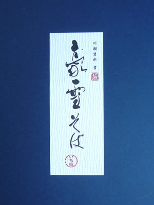 先日、ご紹介したかわせみの筆文字ロゴ「豪雪そば」。 詳細はこちら>>> このたび、クライアント様の「いち粒」オンラインショップにて、 販売がスタートしました。 http://www.ichiryu-nouentai.com/ ※「そば・うどん」のカテゴリーよりご覧ください。 高級感あふれる紫紺のBOXに入ったギフトセットです。 <内容> ・芯挽きそば/200g×3袋 ・丸挽きそば/200g×3袋 ・専用つゆ/190g×2缶(ストレートタイプ) 更科仕立ての芯挽きそば、田...