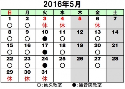 新緑が青空に映えるすがすがしい季節となりました。 新しい学年が始まりもうすぐ1か月、新しい環境には馴染めま したか。 さて来月の教室日程が決まりましたのでお知らせいたします 曜日毎の時間等は 教室の時間について でご確認ください 申し訳ありません初回に掲載した日程に間違いがありました 【訂正版】 5月1日は稽古をおこない、従来通り5週目をお休みとします