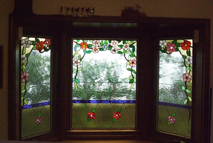 JUGEMテーマ:ステンドグラス制作 出窓のステンドグラスを取付いたしました☆ とてもステキになり感動していただきました☆ 外の塀からちょうど通行人の顔が見えましたが、 これで大丈夫です! ステンドグラスで見えなくなりましたよっ☆ 上部は外の自然がゆっくり眺められますね!! 5月に取付けたトイレのステンドグラスと 同じデザインでトイレ用ペーパータオルBOXを作成し納品いたしました☆ これでトイレがグーンとステキになりましたね☆