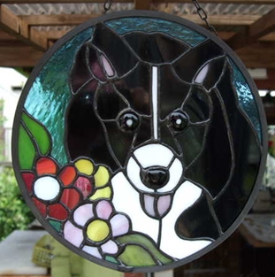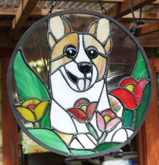 JUGEMテーマ:ステンドグラス制作 I様のくるりちゃん完成と無事発送いたしました☆ 前足が花や草、葉の上に載ってる感じで・・・と 撮ってきた写真をみせてくれました。 舌は少しでていて、首輪、服はなしにしてくださいとの ご要望でした!! ご満足いただけたでしょうか!お値段につり合った デザインになったかとおもいます☆ ありがとうございました☆