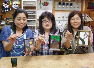 JUGEMテーマ:ステンドグラス制作 作成した作品群です☆ 3月にフットランプ、トレーを作りました☆ 今回はストラップも作りました。 楽しいわ〜 次は何作ろう・・・また来ま〜す。とのこと!! とっても楽しそうでした☆
