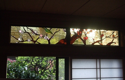 JUGEMテーマ:ステンドグラス制作 白梅・紅梅・鶯(メジロ)のステンドグラス取付完了!! とても気に入って頂けて、とても嬉しいです☆