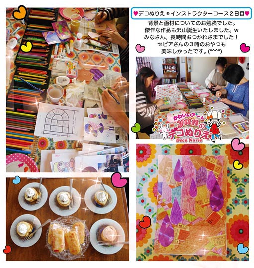 JUGEMテーマ:デコぬりえ o(ΦxΦ)oこんばんは!こちらは.すごい雷雨(スコール)です。外は.雷が鳴り響いていてコワイので.お家で.ブログを更新することに決定いたしました。 |ω・) …チラッ ヘ(-′д`-)ゝ半分晴れて半分雷雨な今日このごろ。みなたま.いかがお過ごしでせうか? 7/18(sat)に.第1回インストラクターコース(3日目)を開講しました。@cafeまめのき o(ʘ`ωʘ´)oまたまた.大幅に時間を延長し.なんとか完成!(*✧×✧*)...