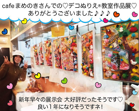 JUGEMテーマ:デコぬりえ 2017.1.14.sat ˚₊*̥p(⁎✪͠ _̆ ✪͠ ⁎)q˚₊*̥最近とっても寒いですね!寒中お見舞い申し上げます!!! 早いものでお正月はもう過去形。。。年末年始はどのようにお過ごしでしたか? yunは寒風吹きすさぶ中、池袋要町のcafeまめのきさんまでお出かけして来ました〜♪ cafeまめのきさんにて、12/24に開催された「デコぬりえ®教室作品展」が1/14で最終日でした。滑り込みで拝見して...
