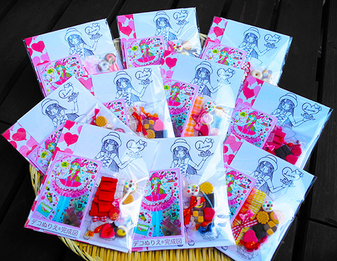 JUGEMテーマ:デコぬりえ 2017.1.20.fry °˖✧°˖ヽ(*´▽`*)ノ◜˖°✧˖°バレンタインテーマのデコぬりえ®キット、出来上がりマシタ〜♡ 粘土デコパーツは、また今回も、cafeまめのきさんに制作していただきました♪店長さんが主になって制作されたそうですが、、、粘土で作ったお菓子パーツが、すごく美味しそうに上手に出来ていて、かわゆいので、なるべく目立つ様に袋詰めしました♪yunの旦那さんも食べそうになって...