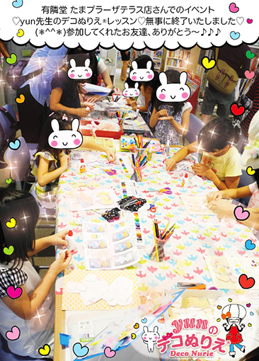 JUGEMテーマ:デコぬりえ 2016.7.23.sat (。Ő▽Ő。)ノ゙「有隣堂 たまプラーザテラス店」さんでの、デコぬりえ®イベントありがとうございました♡http://www.yurindo.co.jp/store/tamaplaza/ 「有隣堂 たまプラーザテラス店」さんの児童書コーナーは、外光が降り注ぐ開放的なガラス張りの明るい雰囲気で、とても素敵なお店デス♪ ꒰๑˃͈꒵˂͈๑꒱୭̥そんな中、金の星社さんの涼やかな笑顔の営業さんA.N.さんが、yun...
