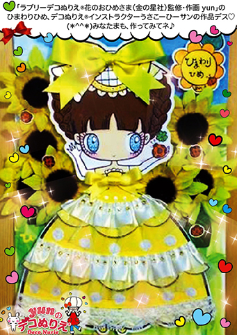 JUGEMテーマ:デコぬりえ 2016.8.6.sat (。v_v。)毎日毎日お暑うございまっす。。。ぬりえ愛好家のみなたまお元気でお過ごしですか? 猛暑の中、よみうりカルチャー町屋さんにて「デコぬりえ®教室」が開催されました♡ヽ(*´▽`*)ノこの暑さに負けず、ピュアで元気な女の子4名が参加してくださいました♡どうもありがとう〜! yunの初の著書デコぬりえ®キット本「ラブリーデコぬりえ®花のおひめさま(金の星社)監修・作画 yun」から「ひまわりひめ」を、デ...