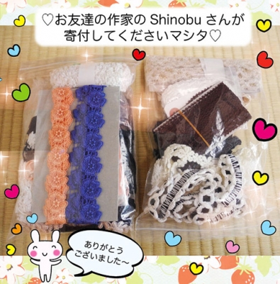 JUGEMテーマ:デコぬりえ ‧˚₊*̥ପ(⑅ ॣ•͈૦•͈ ॣ)ଓ˚₊*̥現代アーティストのShinobuさまが「デコぬりえ®用に使って♪」と、デコパーツを寄付して下さいマシタ♡ がんばって活動していると応援してくださる方もいるのだなぁ〜と。。。とても嬉しいです!!!!!!かわいいリボンとかレースが沢山入っていマス♡喜♡お教室の際に役立たせていただきたいと思いマス♪ ✧*。ヾ(。>﹏<。)ノ゙✧*...