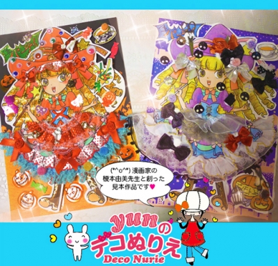 JUGEMテーマ:デコぬりえ 先日、漫画家の榎本由美先生と一緒に、9月のデコぬりえcafeに使用する、デコぬりえ見本作品を制作しました♪ ˖°✧˖°ヽ(´▽`)ノ˖°✧˖° 9月のデコぬりえcafeのテーマは、ハロウィンです♡ こちらの由美先生画のぬりえで、やりますよ〜!!!うきうき♪ お洒落な巻き毛の魔女ちゃんの絵なので、すごくデコりがいがあります♪ 心やさしい方なので、いろいろなお話をしながらの作業も、とっても楽しかったデス。 由美先...