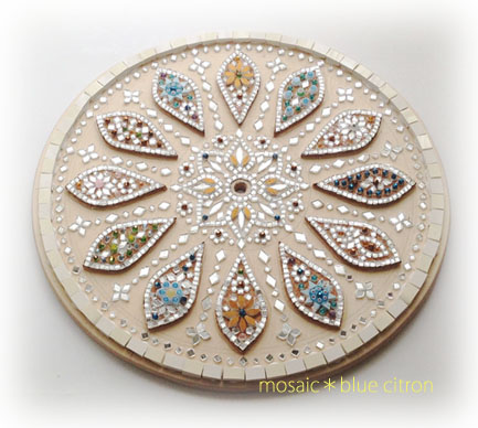 モザイクの鏡*Le Petit Bleu*ル プチ ブルー モザイクの鏡の新作ができました。 模様の色とデザインがとってもかわいくて綺麗なモザイクの鏡です。 模様に使っている小さくカットしたミラーが光を反射してキラキラキラキラ光ります。 今年一年ほんとうにありがとうございました。また来年もどうぞよろしくお願いいたします。 良いお年をお迎えください。.☆゚・*:.。.☆。 ...☆ モザイクと海外の雑貨のお店☆http://mosaic-tile-citronbleu.com