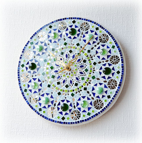 モザイク brillant モザイクの時計(注文制作)。 水面に太陽の光が当たってキラキラきらめくようなイメージで作りました。
