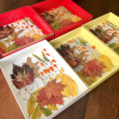 Pressed autumn leaves are ready for kids art. 紅葉した葉などを押して、アート作品を作ります。 Here are examples. What do you think they are? 息子たちと一緒に、いくつかお見本を用意しました。 よくわからないのもできちゃって、それがまた面白いです。 Let's start! &nb...