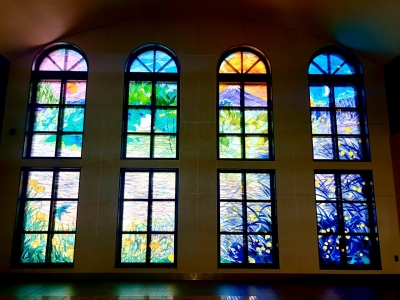 JUGEMテーマ:日々徒然 JUGEMテーマ:ステンドグラス 昨日に続き 送って頂いた画像をご紹介します 坂戸駅のステンドグラス 高麗日月です 原画デザインは、日本画家の倉島重友氏 朝、昼、夕、夜と移りゆく一日の時の流れを、高麗川の清流に託されたそうです 色の移ろいが とても綺麗ですね! 4月25日〜5月9日 休みます 練馬区の新型コロナウイルスのお知らせは...