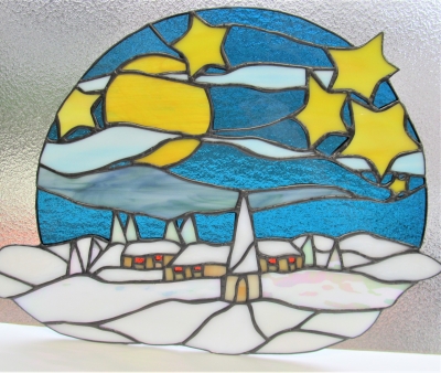 JUGEMテーマ:ステンドグラス おひな様、鯉のぼり、フクロウと月 等々 季節のパネルを制作されているTさん 真冬のパネルとして 人気のデザインをアレンジされました 飾られる場所に合わせ 全体を小さめに 又、星の数も少なくなりましたが、全く寂しい感じには、ならず 満天の星と 満月 雲の流れも素敵です  ...
