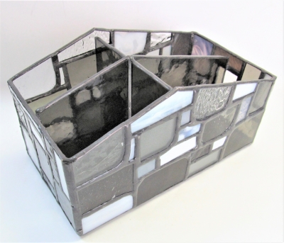JUGEMテーマ:ステンドグラス 以前制作された ティシュケースとお揃いのデザインで リモコンケースを制作されました モザイクのティシュケースは、こちらです グレー、クリア、白と モノトーンのモザイクが お洒落です ...